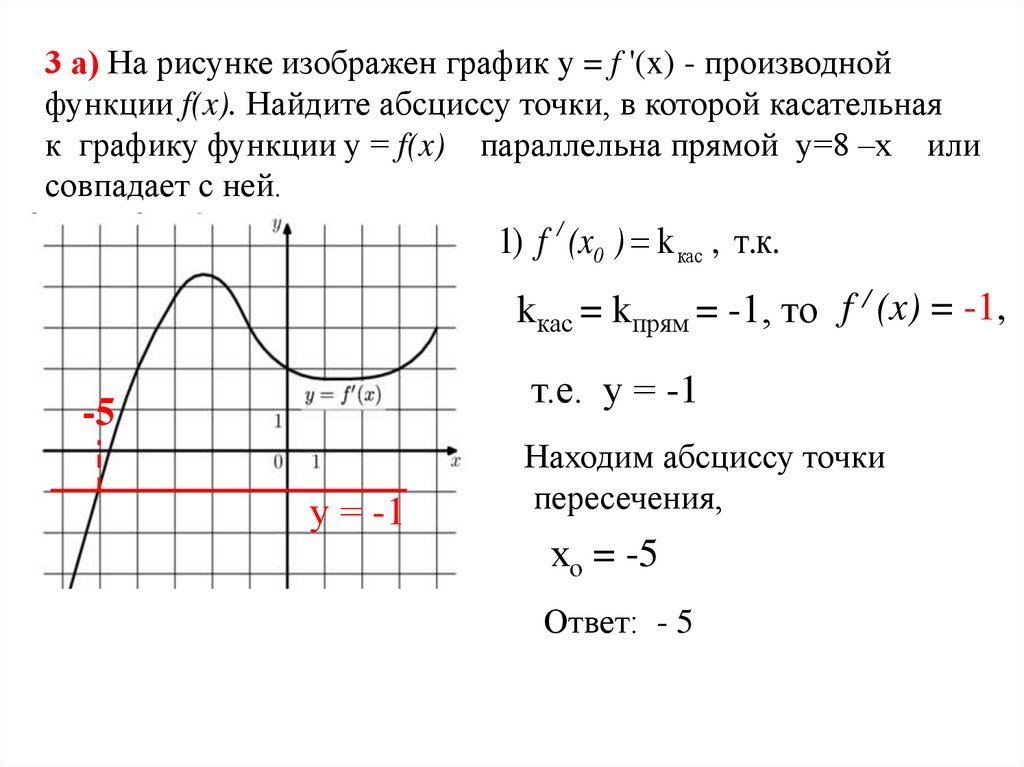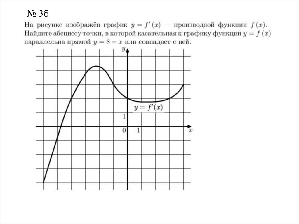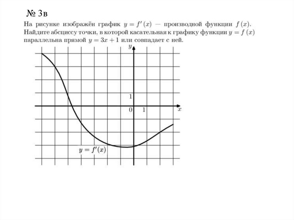 3 а) На рисунке изображен график y = f '(x) - производнойфункции f(x). Найдите абсциссу точки, в которой касательная