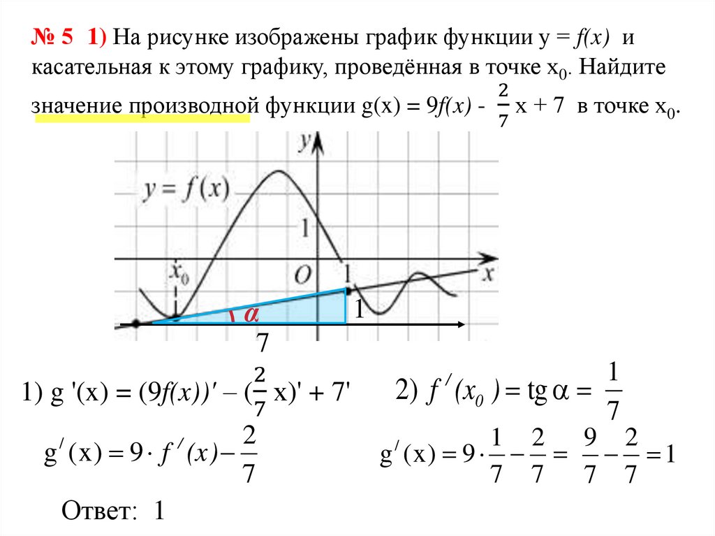 № 5 1) На рисунке изображены график функции у = f(x) икасательная к этому графику, проведённая в точке x0. Найдите