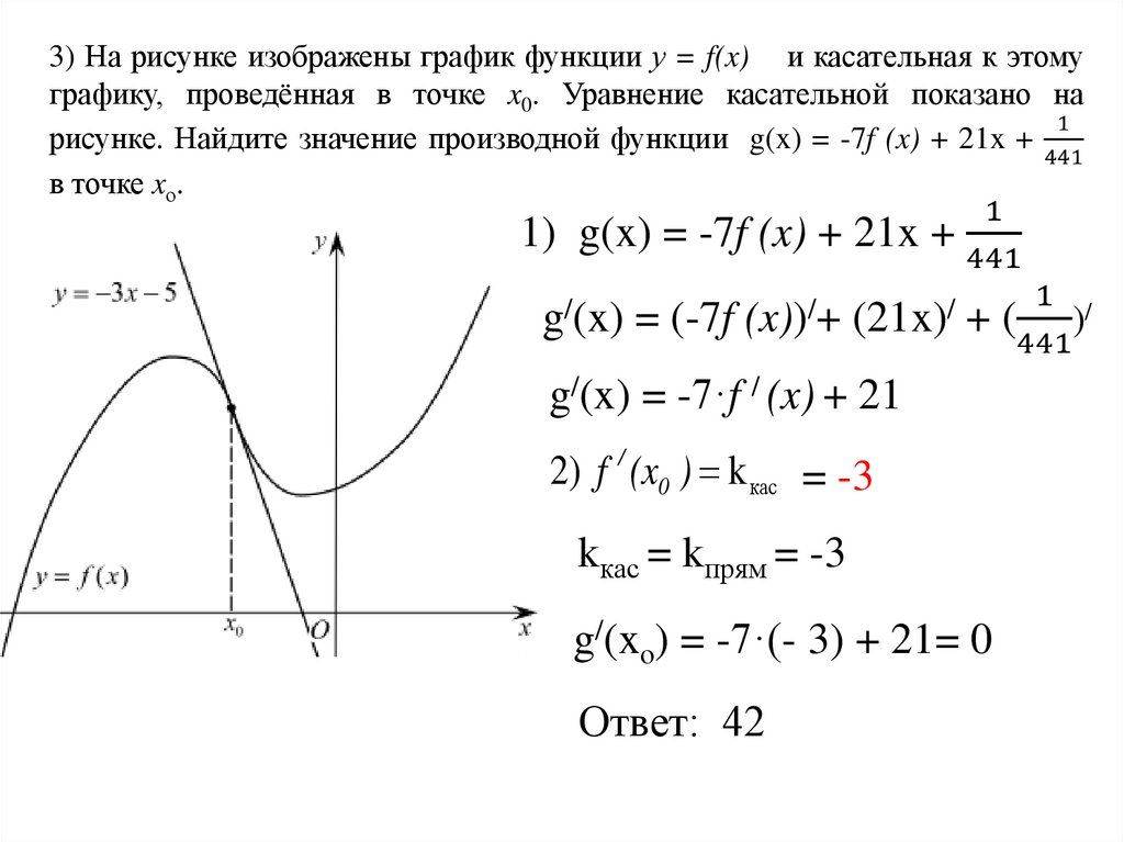 рисунке. Найдите значение производной функции g(x) = -7f (x) + 21x +
