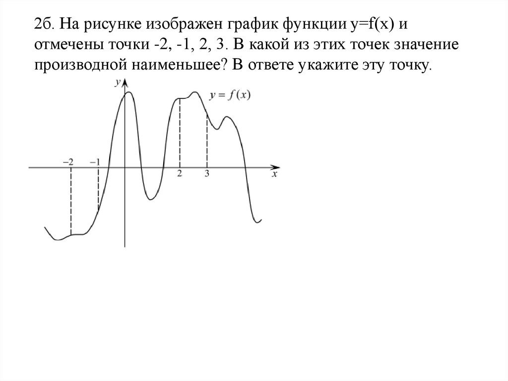 2б. На рисунке изображен график функции y=f(x) иотмечены точки -2, -1, 2, 3. В какой из этих точек значение