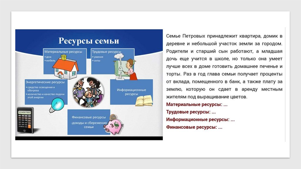 4. Распределении ресурсов(формирование бюджета и управление семейным бюджетом,
