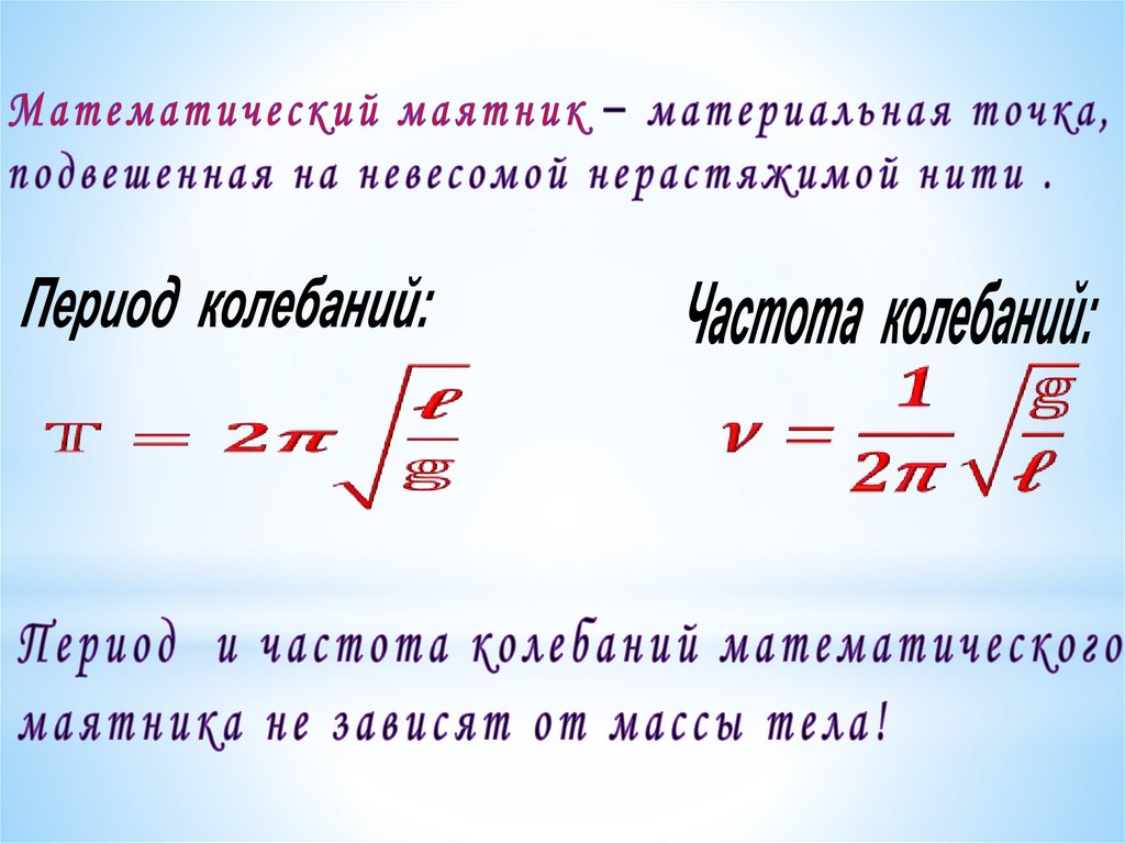 • Для математического маятника