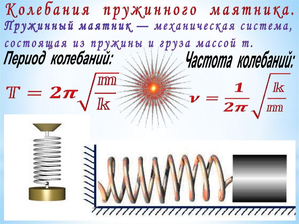 Маятник на пружине — механическая система, состоящаяиз пружины с коэффициентом упругости (жёсткостью) k ,