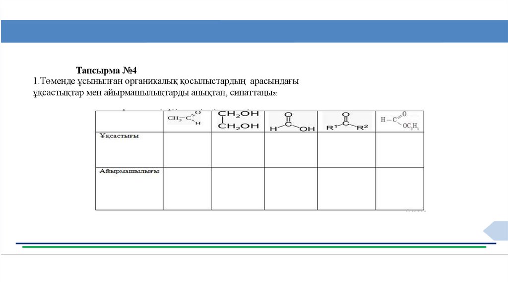 Тапсырма №41.Төменде ұсынылған органикалық қосылыстардың арасындағы