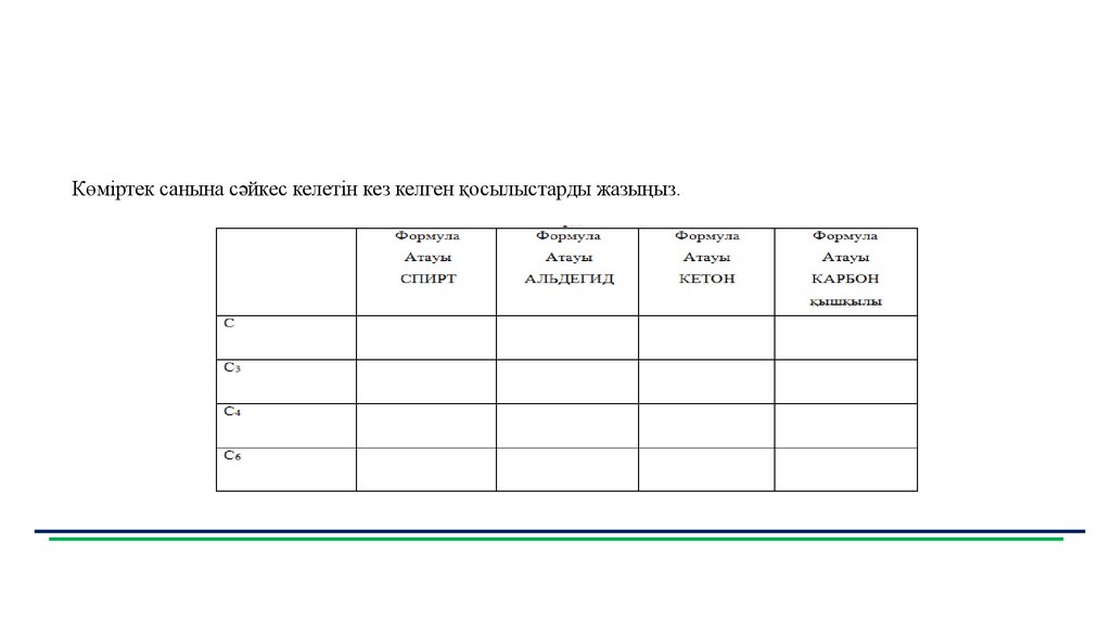 Көміртек санына сәйкес келетін кез келген қосылыстарды жазыңыз.24. Тапсырма № 2