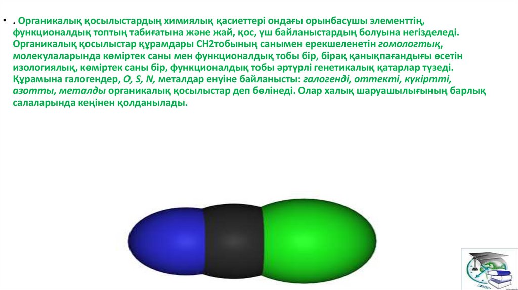 6. Органикалық қосылыстар – құрамында негізгі элемент ретінде әрдайым көміртек атомы болатын химиялық қосылыстар (көміртек
