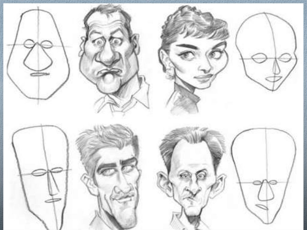 их отрицательных качествах через нарушениепропорций так, чтобы в конечном счете постройка рисунка
