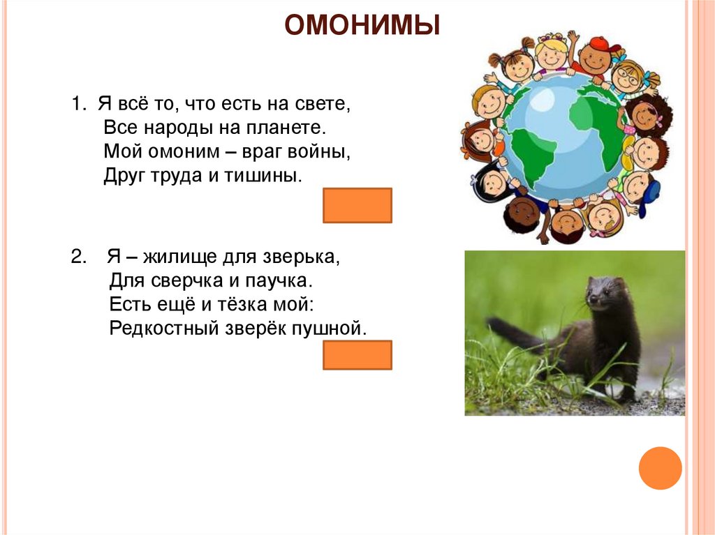 ОМОНИМЫ1. Я всё то, что есть на свете,