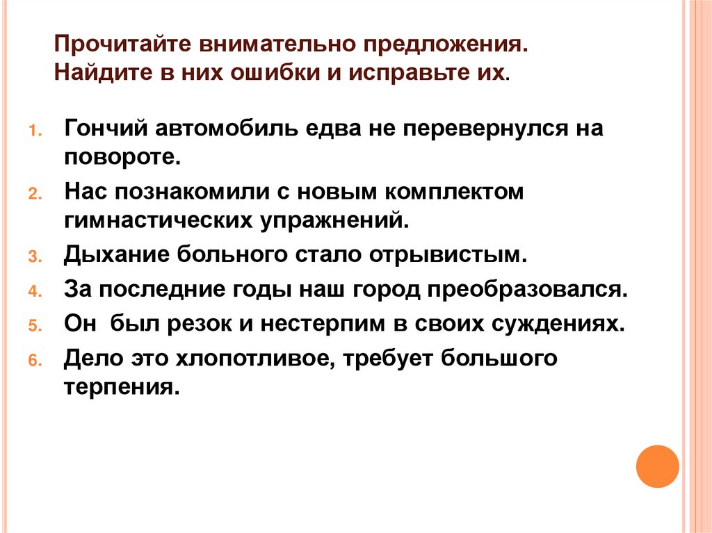 Прочитайте внимательно предложения.Найдите в них ошибки и исправьте их.
