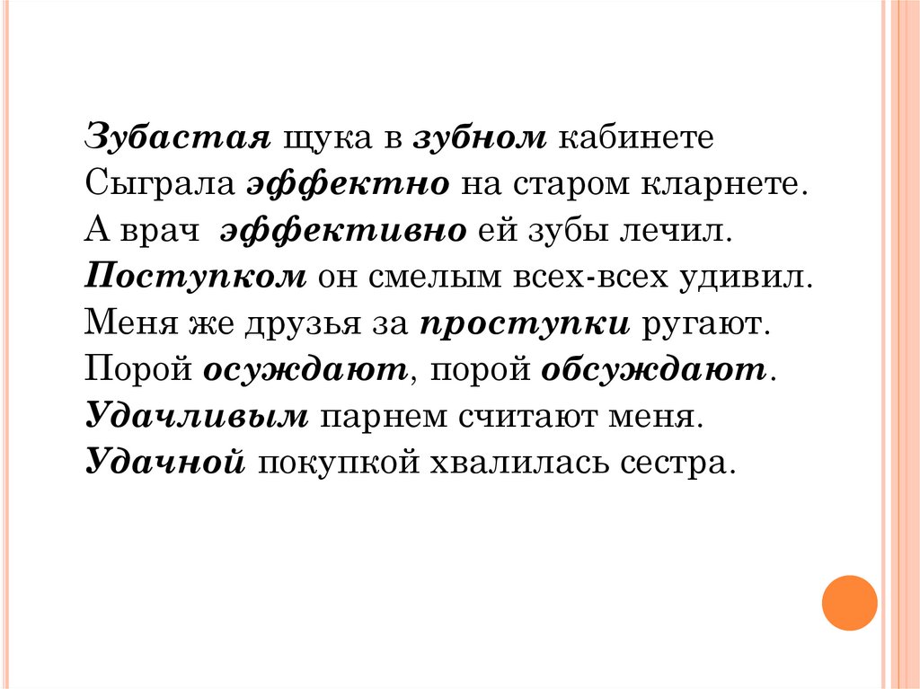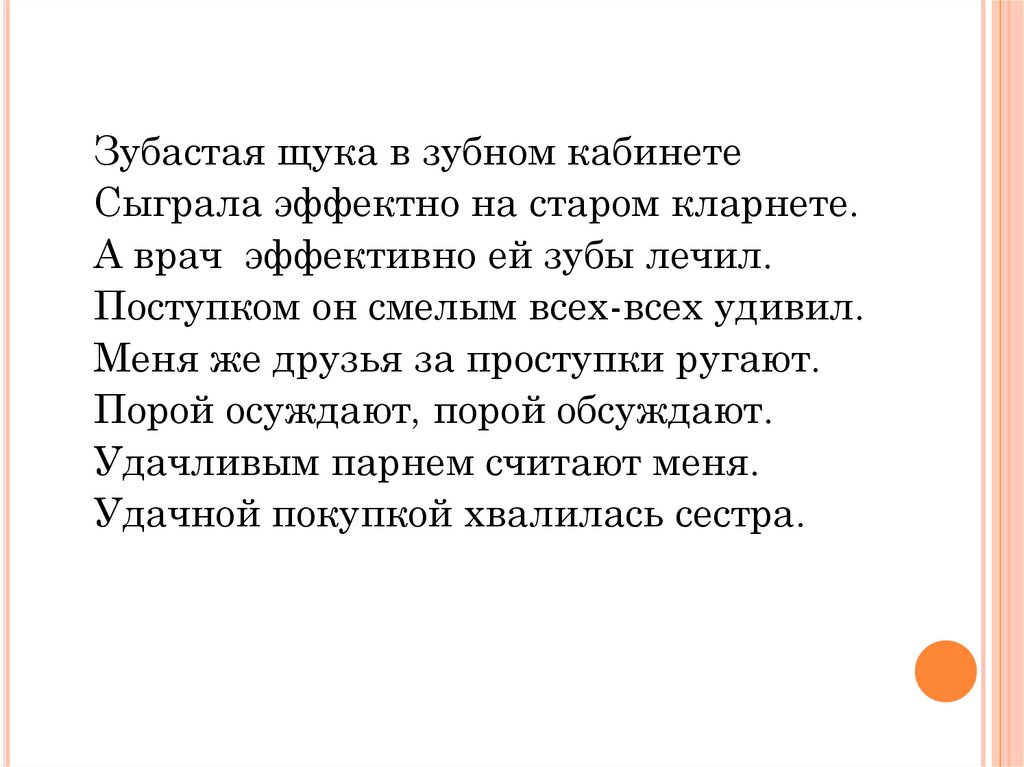 Зубастая щука в зубном кабинетеСыграла эффектно на старом кларнете.
