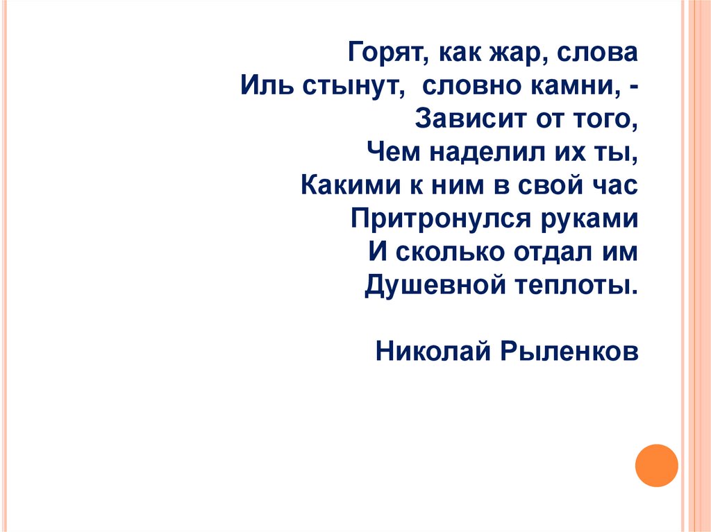 Горят, как жар, словаИль стынут, словно камни, Зависит от того,