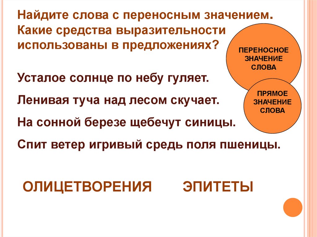 Найдите слова с переносным значением.Какие средства выразительности