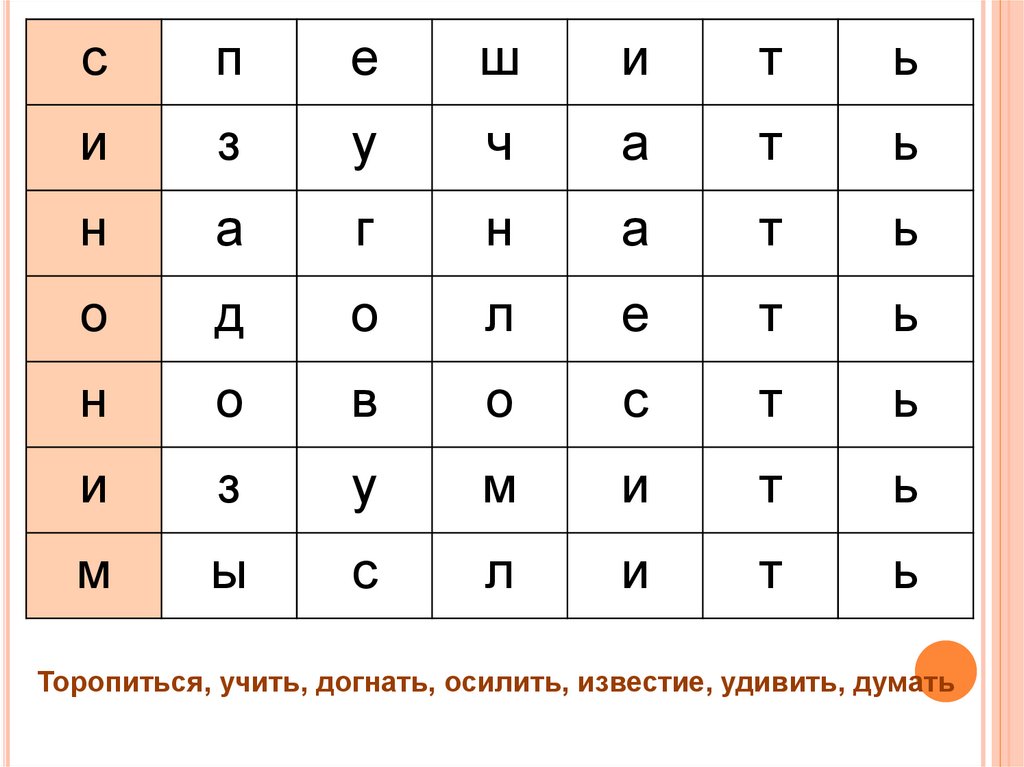 Торопиться, учить, догнать, осилить, известие,удивить, думать
