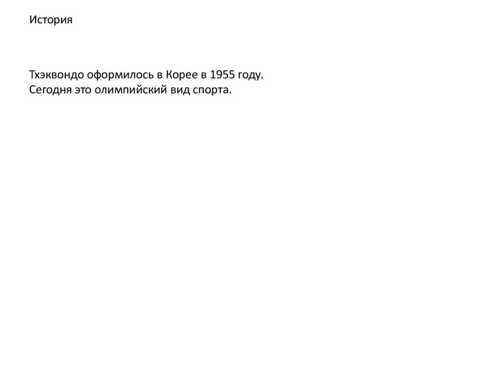 ИсторияТхэквондо оформилось в Корее в 1955 году.