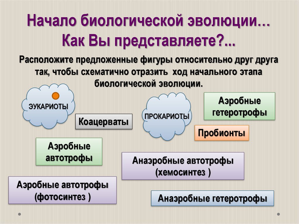 начало эволюции от простейших форм к сложным.