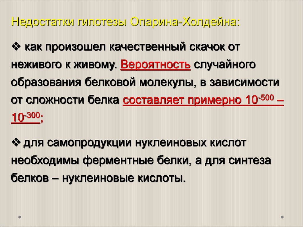 Недостатки гипотезы Опарина-Холдейна:как произошел качественный скачок от