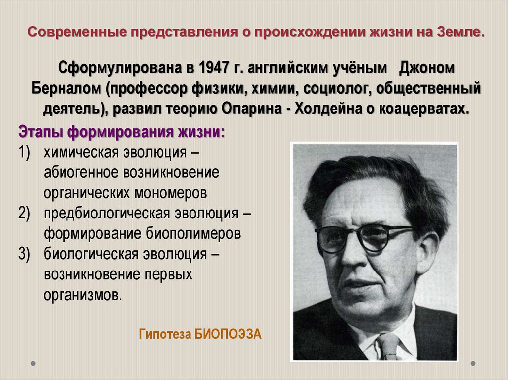 Современные представления о происхождении жизни на Земле.Сформулирована в 1947 г. английским учёным Джоном