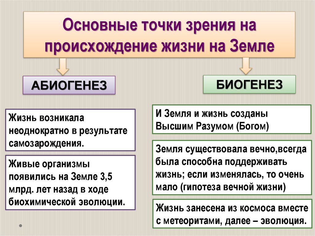 Основные точки зрения напроисхождение жизни на Земле
