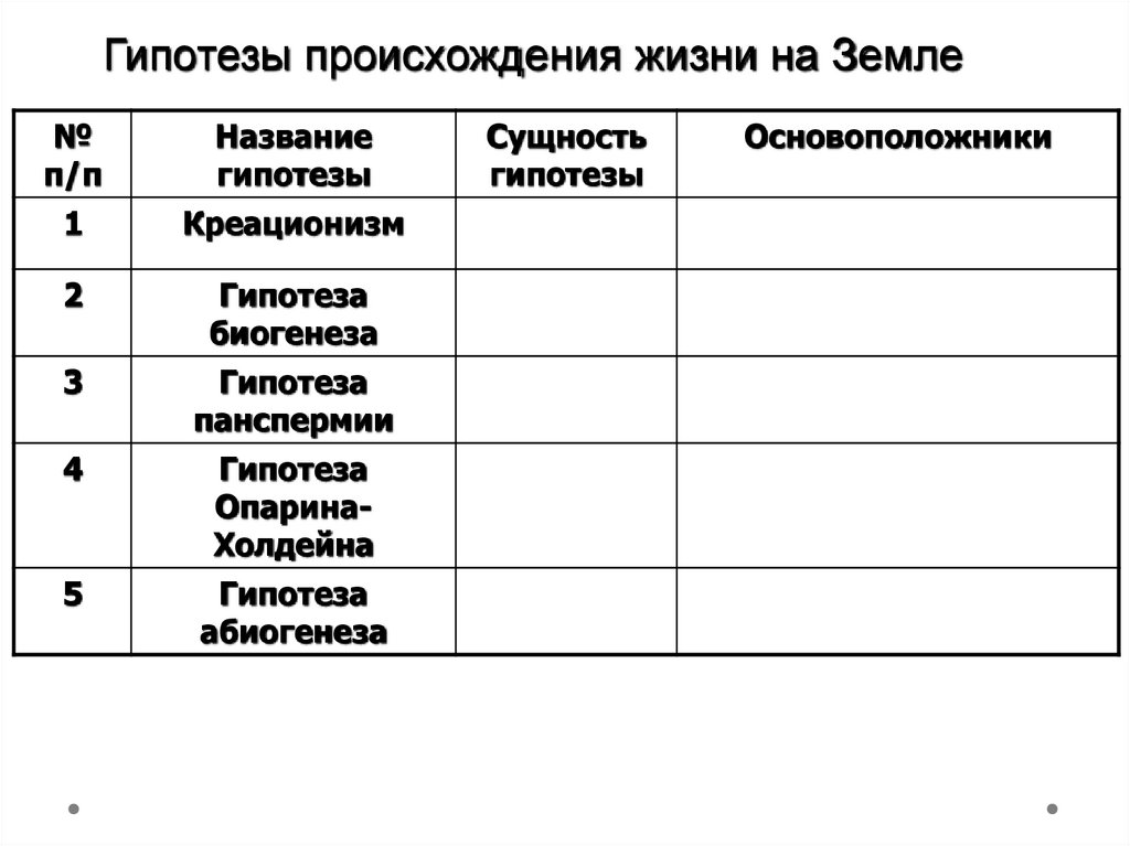 Гипотезы происхождения жизни на Земле№