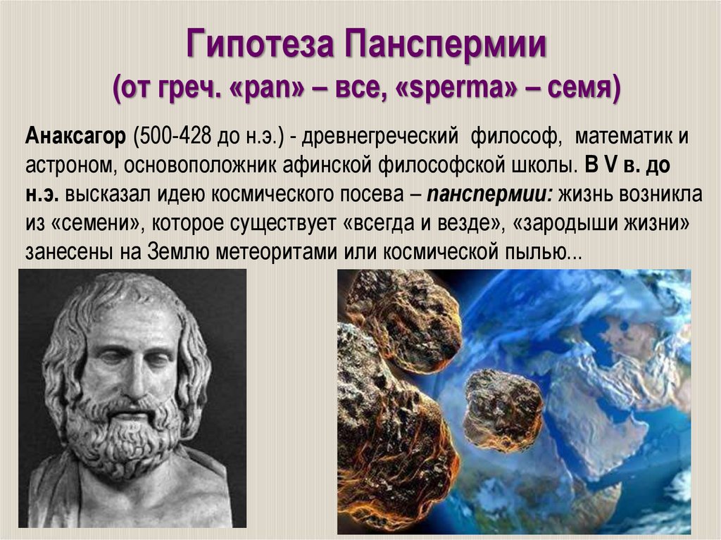 Гипотеза Панспермии(от греч. «pan» – все, «sperma» – семя)