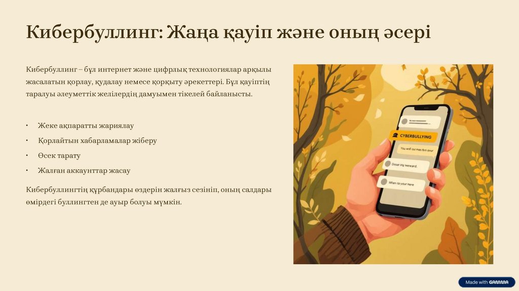 Кибербуллинг: Жаңа қауіп және оның әсеріКибербуллинг – бұл интернет және цифрлық технологиялар арқылы
