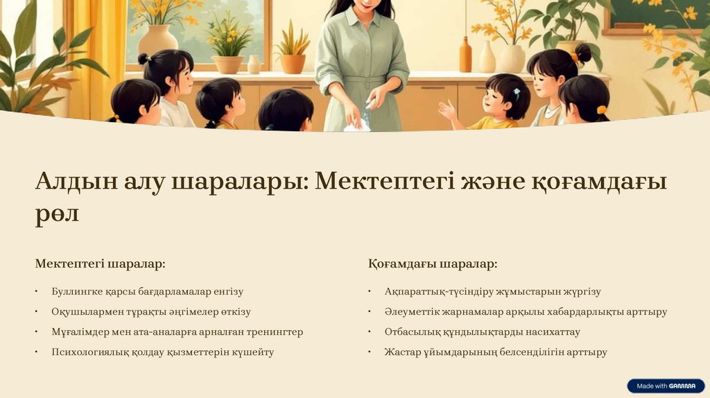 Алдын алу шаралары: Мектептегі және қоғамдағырөл