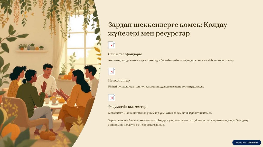 Зардап шеккендерге көмек: Қолдаужүйелері мен ресурстар