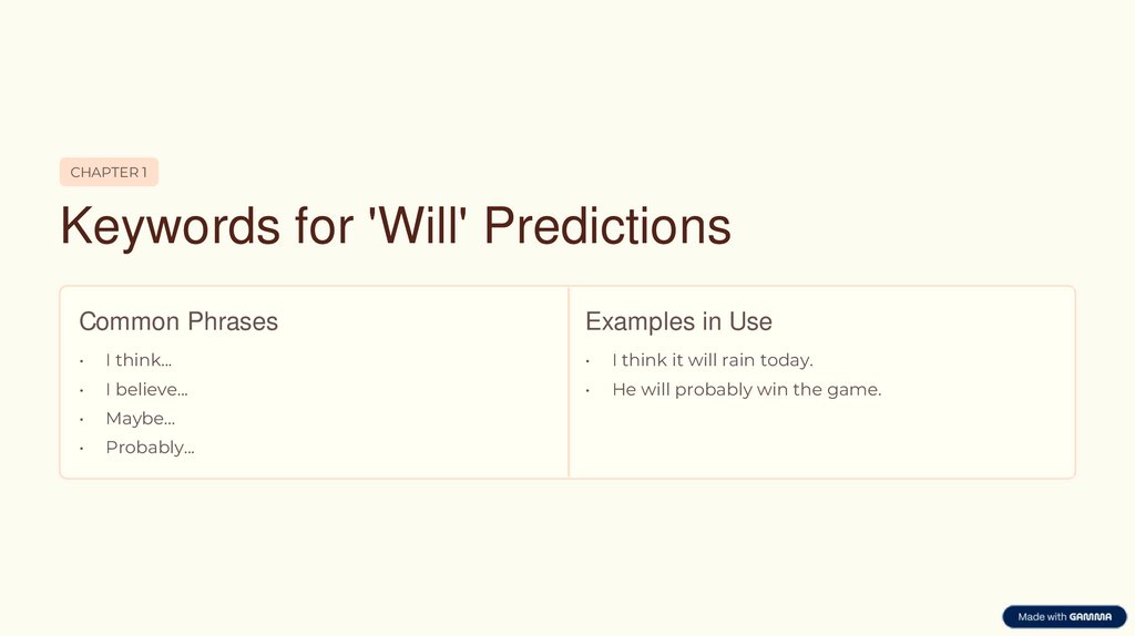 CHAPTER 1Keywords for 'Will' Predictions