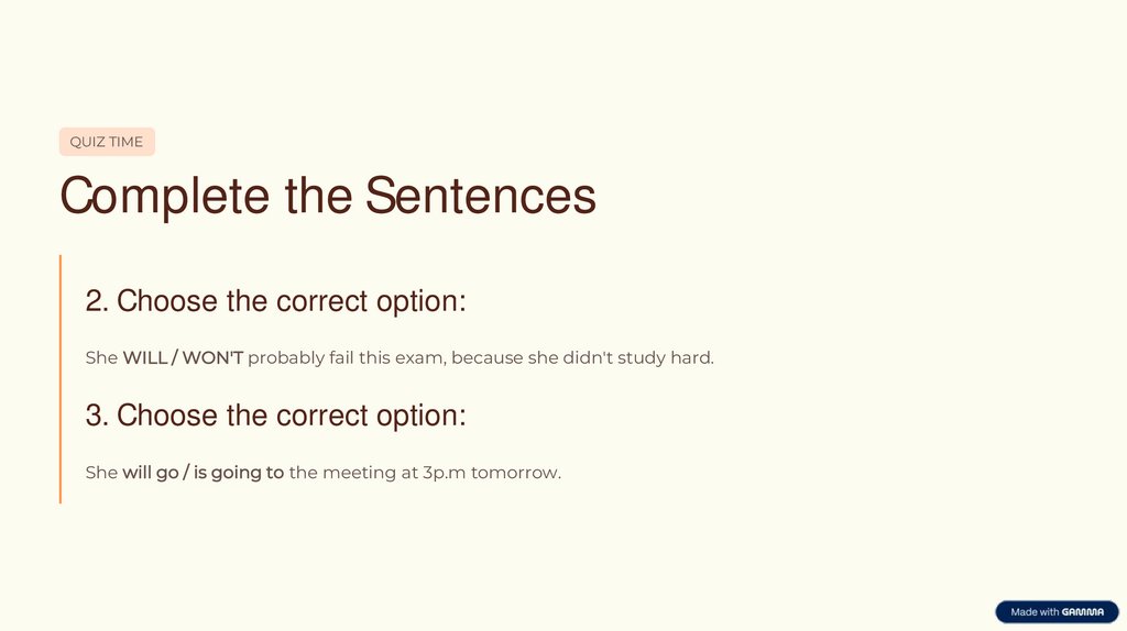 QUIZ TIMEComplete the Sentences