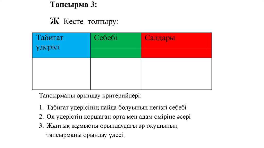 Тапсырма 3:Ж Кесте толтыру:
