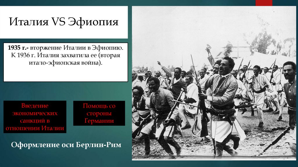 Италия VS Эфиопия1935 г.- вторжение Италии в Эфиопию.