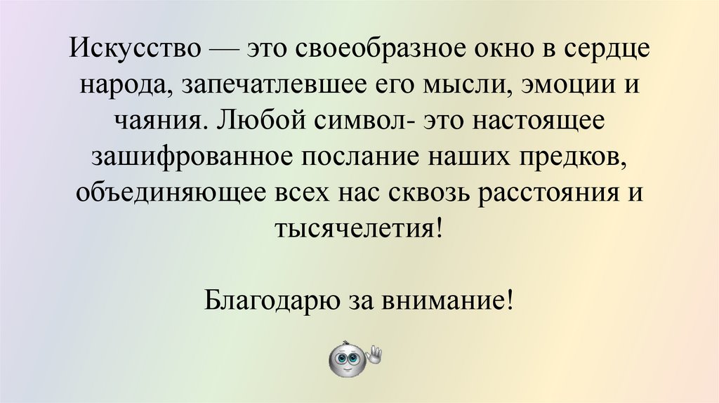 Искусство — это своеобразное окно в сердценарода, запечатлевшее его мысли, эмоции и