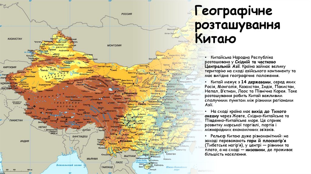 • Рельєф Китаю дуже різноманітний: на