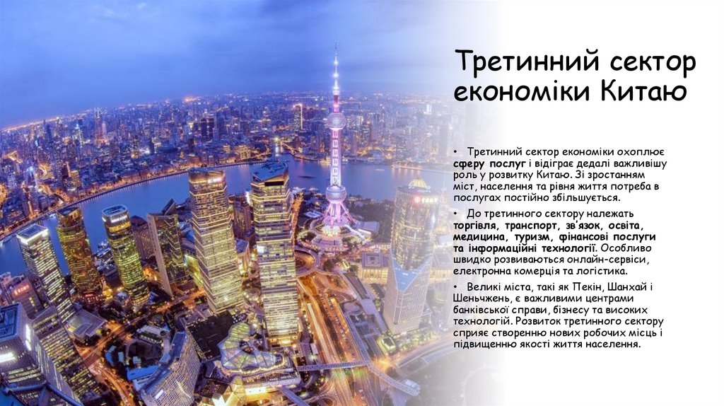 • Великі міста, такі як Пекін, Шанхай і