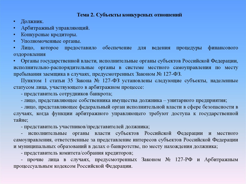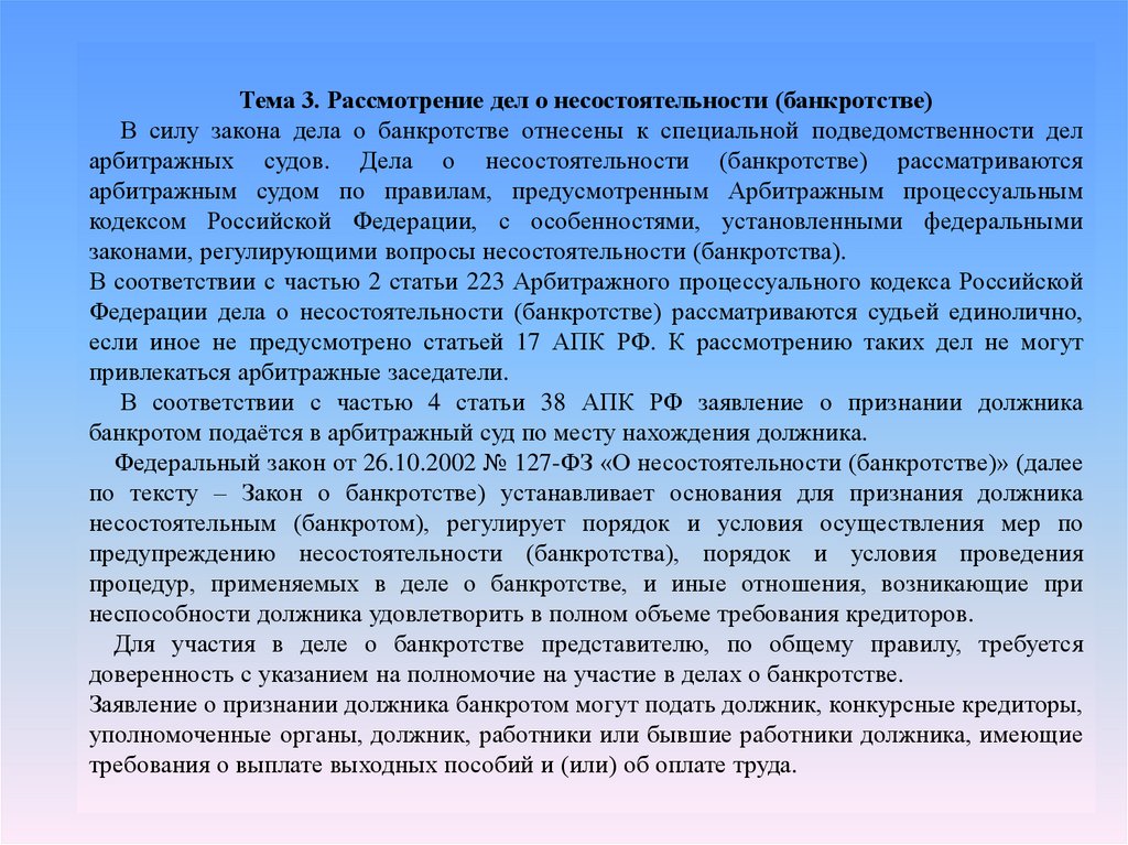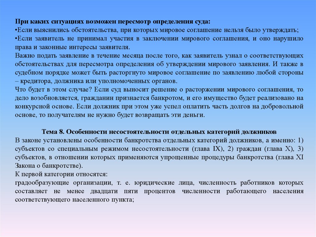 Тема 8. Особенности несостоятельности отдельных категорий должников