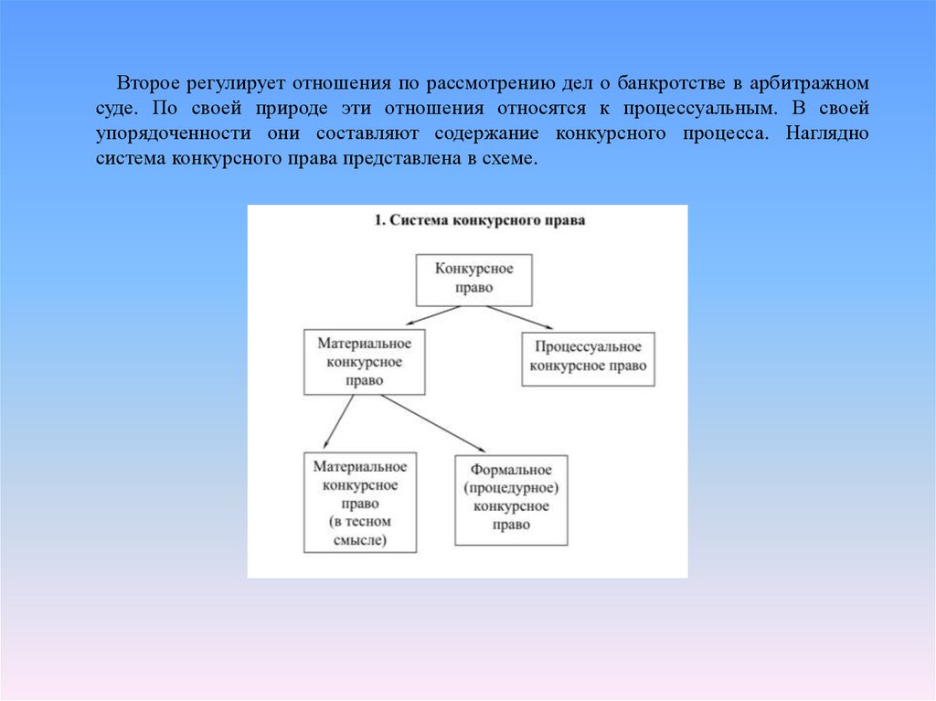 одно и то же, процессуальное конкурсное право. К сфере действия первого относится