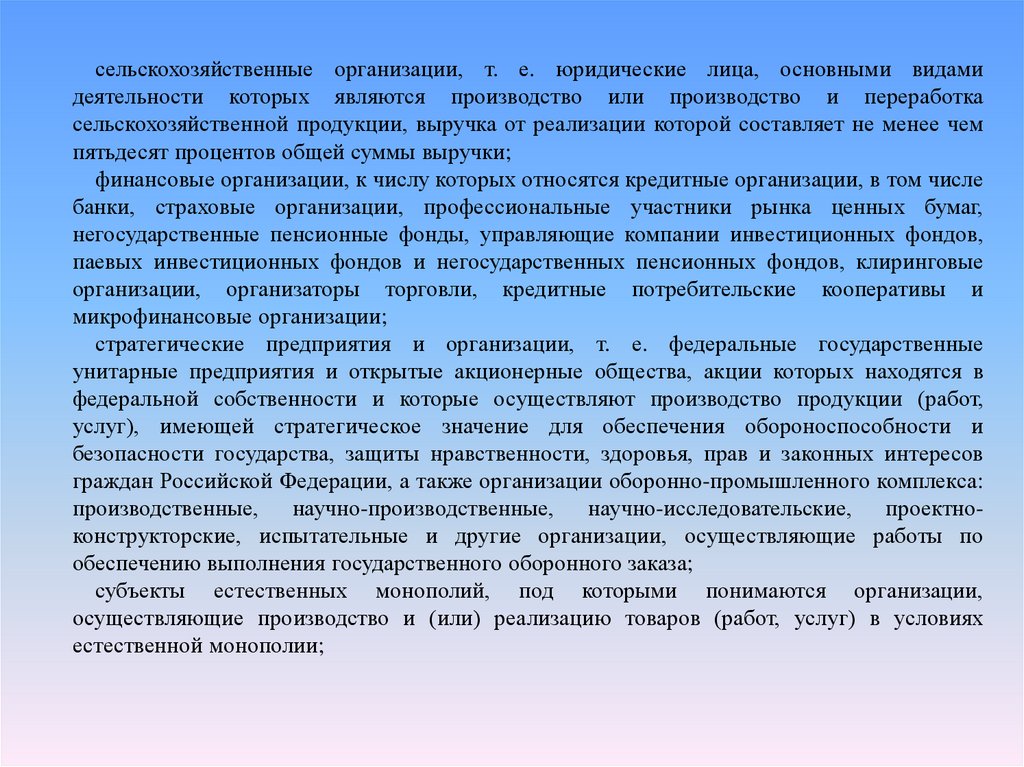 сельскохозяйственные организации, т. е. юридические лица, основными видамидеятельности которых являются производство или производство и переработка
