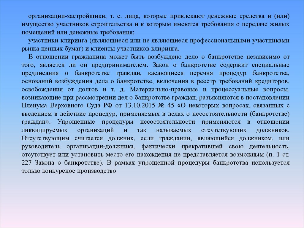 граждан». Упрощенные процедуры несостоятельности применяются в отношении
