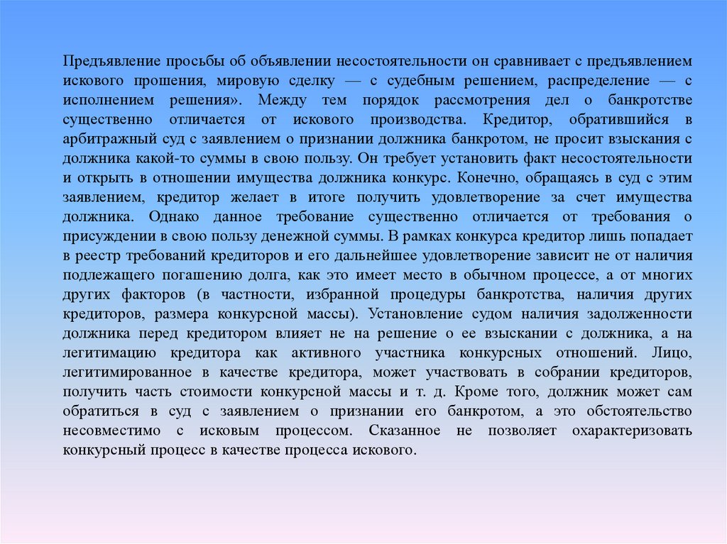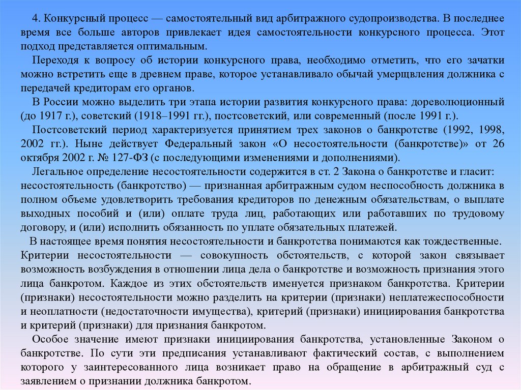 2. Конкурсный процесс — вид особого производства. Некоторые авторы рассматривают