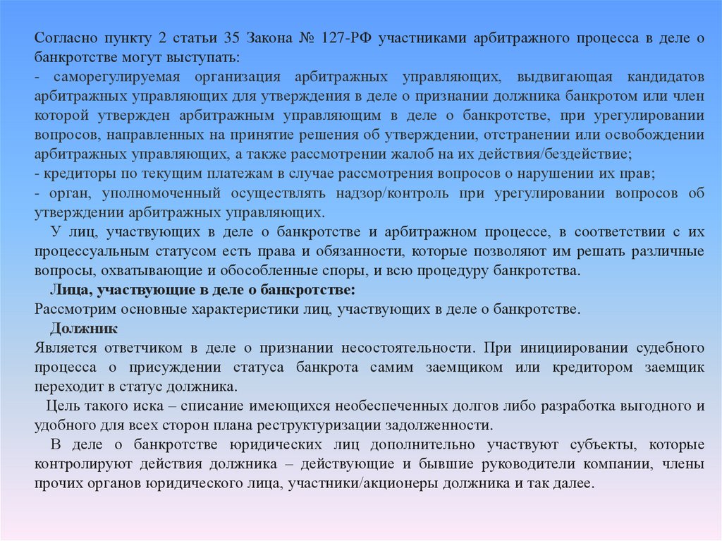 сделок должника), так и публично-правового характера (например, о порядке рассмотрения