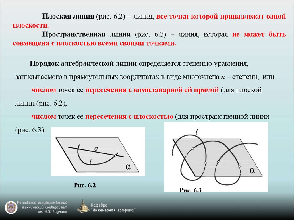 Плоская линия (рис. 6.2) – линия, все точки которой принадлежат однойплоскости.