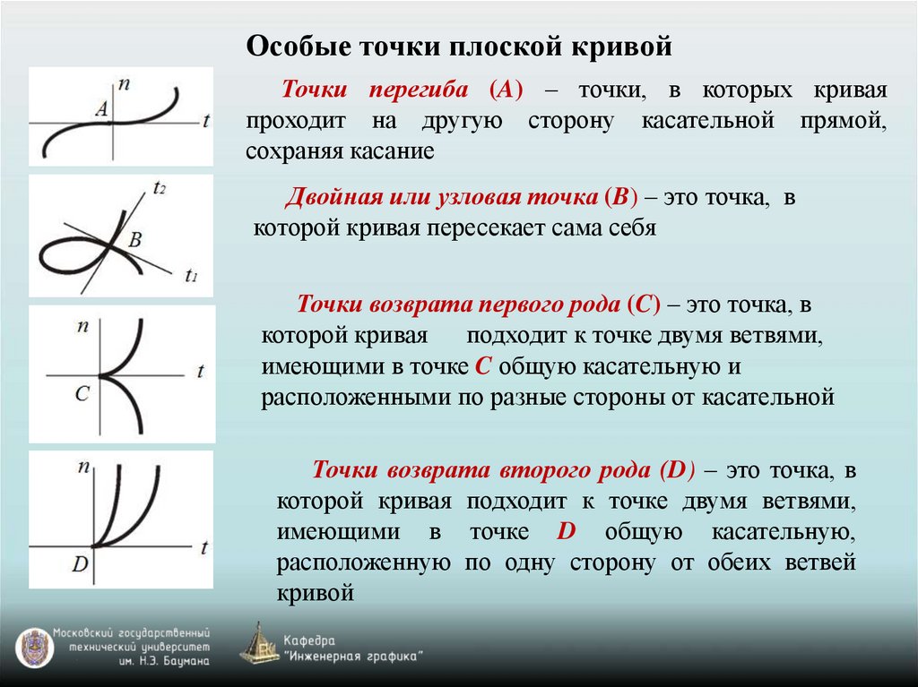 Особые точки плоской кривойТочки перегиба (A) – точки, в которых кривая