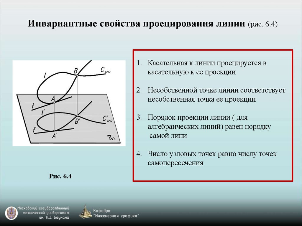 Инвариантные свойства проецирования линии (рис. 6.4)1. Касательная к линии проецируется в