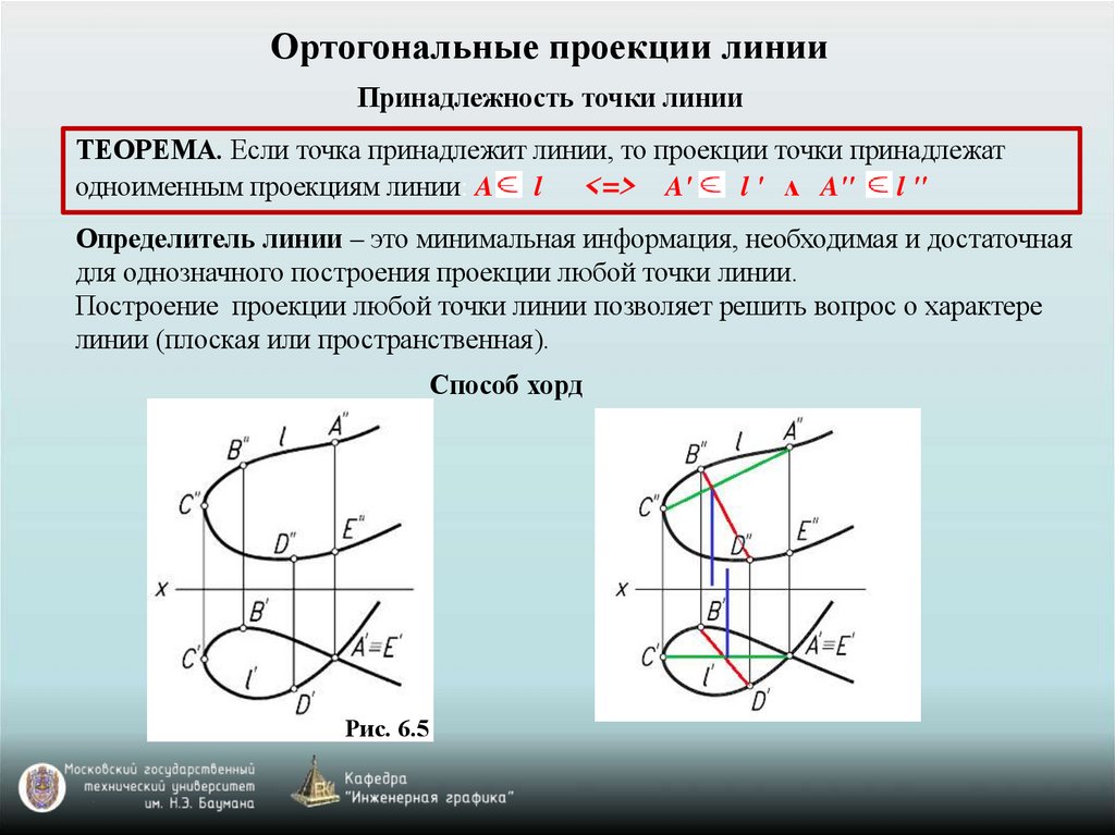 Построение проекции любой точки линии позволяет решить вопрос о характере