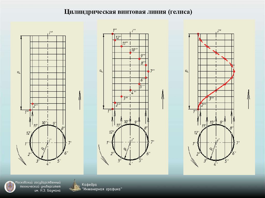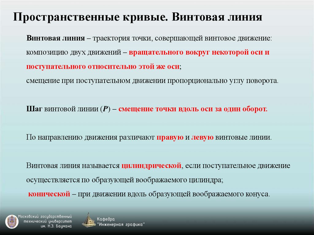 Пространственные кривые. Винтовая линияВинтовая линия – траектория точки, совершающей винтовое движение: