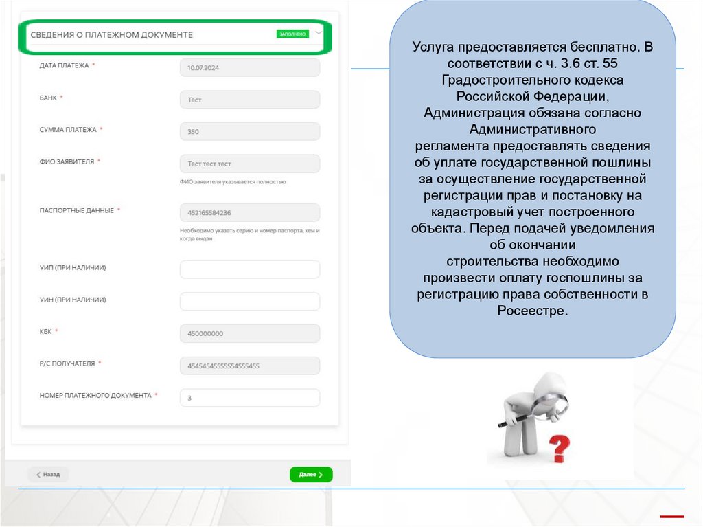 Услуга предоставляется бесплатно. Всоответствии с ч. 3.6 ст. 55