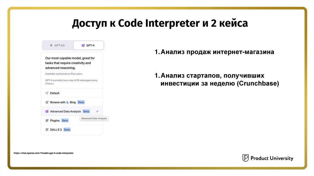 Доступ к Code Interpreter и 2 кейса1. Анализ продаж интернет-магазина