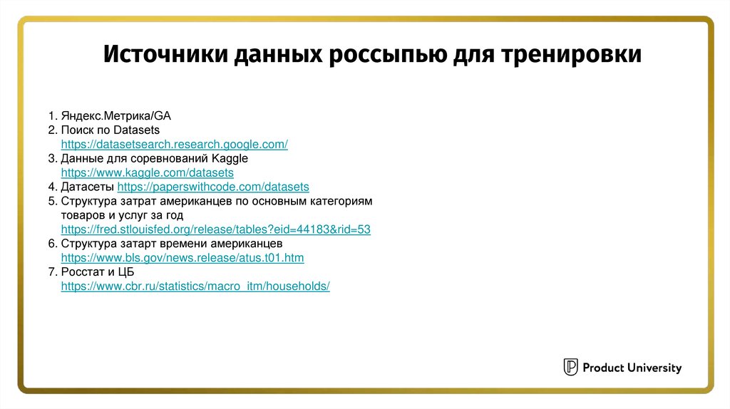 Источники данных россыпью для тренировки1. Яндекс.Метрика/GA