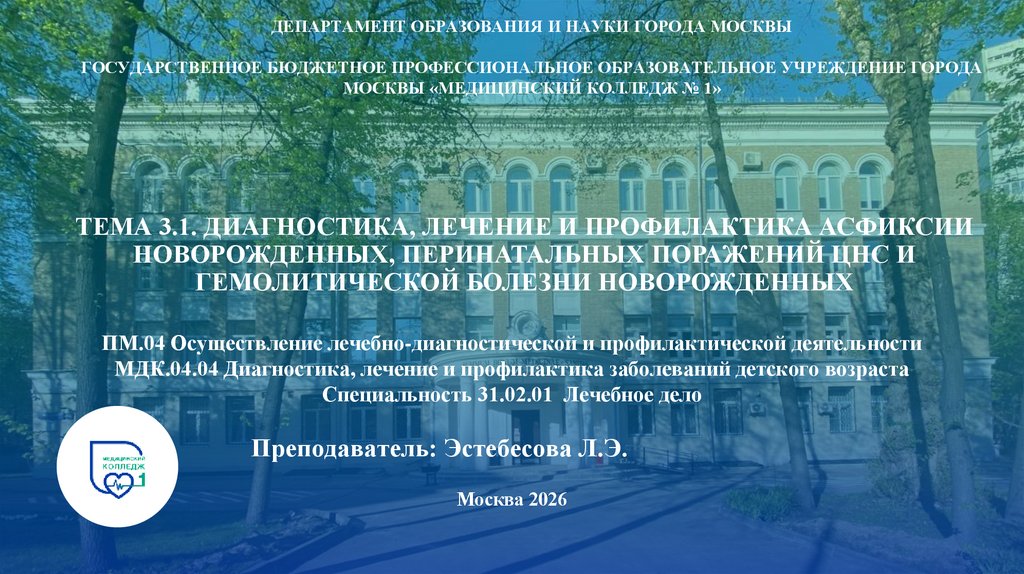 МОСКВЫ «МЕДИЦИНСКИЙ КОЛЛЕДЖ № 1»