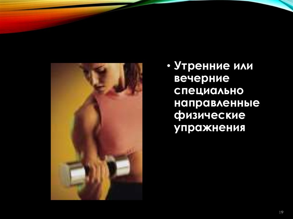 12. Утренние или вечерние специально направленные физические упражнения.